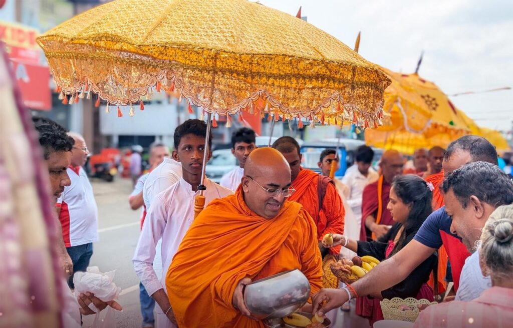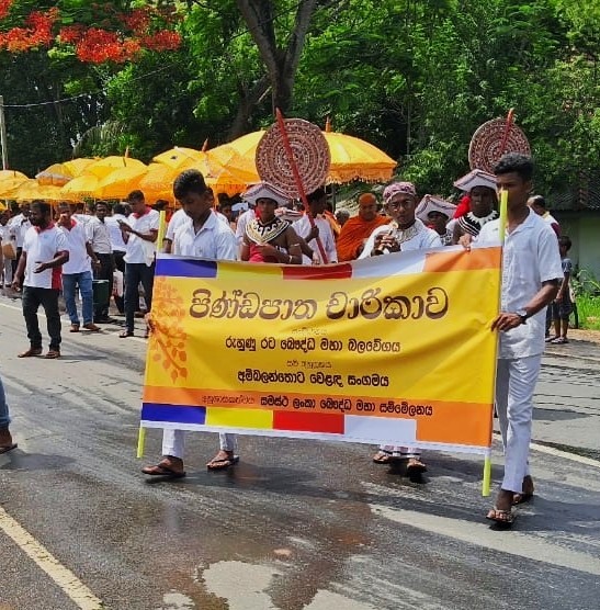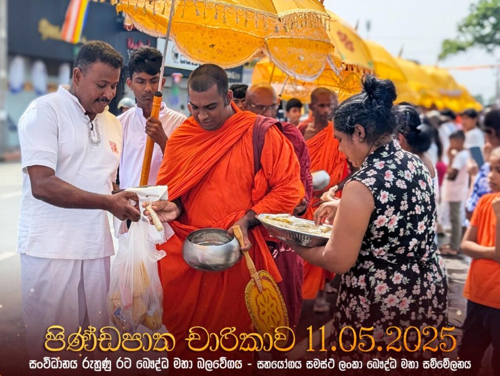 A pindapathika procession organized by the Ruhunu Buddhist Maha Balawegaya was held on 11 May 2025 in the Ambalantota town area, with the support of the Ambalantota Traders’ Association. The event was conducted under the leadership of the All Ceylon Buddhist Congress