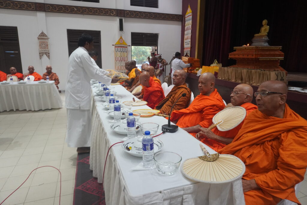 On the following morning, a Sanghika Dana (alms-giving) was offered to the Most Venerable Maha Sangha, organized by the Honourable President, the Executive Committee, office bearers, all members, and the staff.