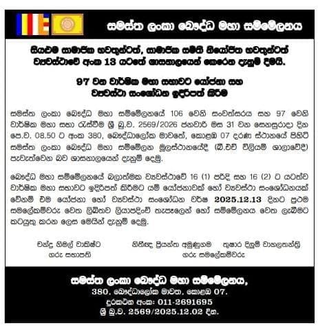 “Submission of proposals and constitutional amendments for the 97th Annual General Assembly of the All-Ceylon Buddhist Congress.”